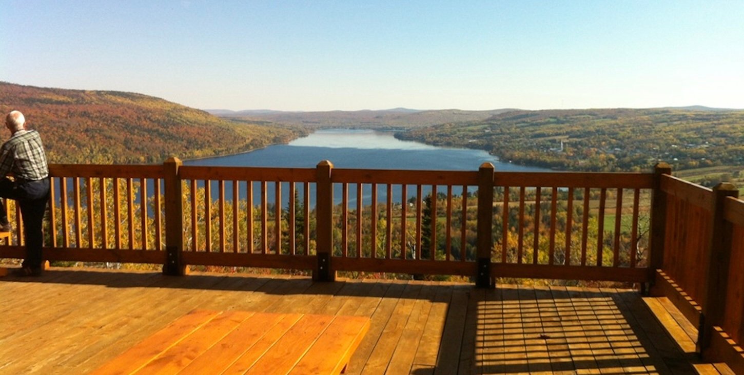 Ce belvédère offre une vue spectaculaire sur le lac Pohénégamook ainsi que sur les secteurs Saint-Éleuthère et Estcourt. Une terrasse aménagée permet aux visiteurs d’admirer le paysage et de se reposer.
