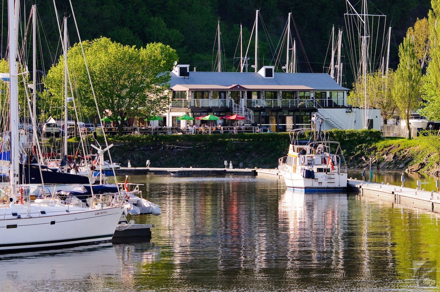 Installations terrestres : Capitainerie élégante, salles pour réunions ou banquets, piscine chauffée, parc aménagé avec gazébo, BBQ, stations de jeux pour enfants, buanderie, salles de douche, nombreux espaces verts, accès direct à la piste cyclable et à la promenade Samuel-de-Champlain, magasin d’accastillage à proximité, club de tennis Montcalm.
