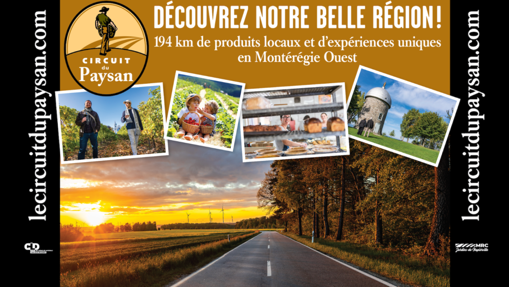Le Circuit du Paysan est un circuit gourmand au Québec qui vous plonge dans l’atmosphère champêtre de la Montérégie Ouest, réputée comme étant le jardin maraîcher de la province. Ce parcours signalisé de 194 km longe la frontière avec les États-Unis et traverse de charmants villages où le temps semble s’être arrêté.