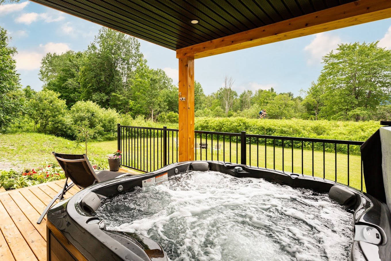 SPA, jacuzzi extérieur pour 4 personnes avec vue sur la montagne Bromont