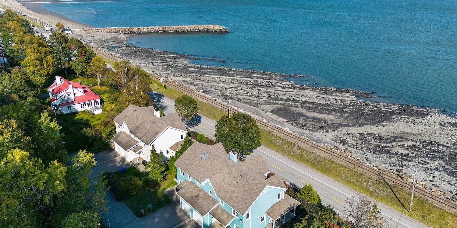Emplacement : Il est situé soit directement sur la Route du Fleuve (Route 362), soit sur les collines surplombant l’Anse de Saint-Irénée, garantissant une vue imprenable sur l’eau, le quai et les montagnes.