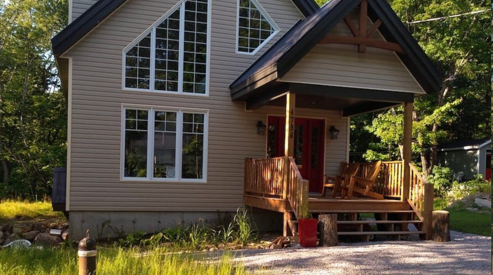 : Cuisine complète, salle de lavage, salle de bain, grande véranda, BBQ, quai flottant, canot, kayaks, pédalo, plage privée, stationnement extérieur gratuit.